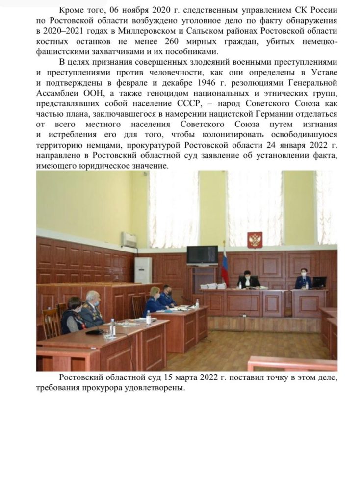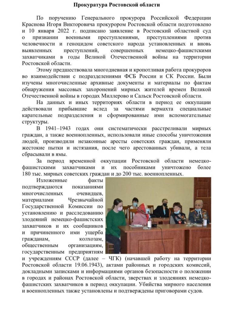 Сведения о работе органов прокуратуры Ростовской области при геноциде народа Советского Союза в годы ВОВ